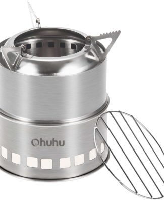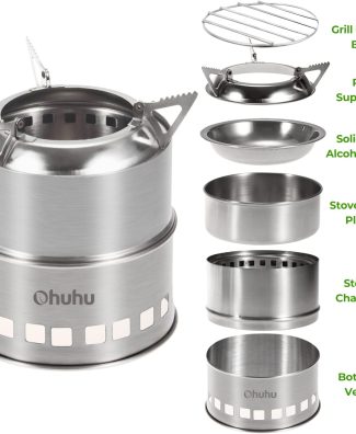 Camping Stove, Ohuhu Camp Stove Wood Burning Stove Stainless Steel Stoves Mini Portable Stove for Camping Picnic BBQ Backpacking Hiking Survival Emergency Cooking Outdoor with Grill Grid Carry Bag