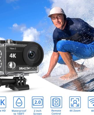 Dragon Touch 4K Action Camera 20MP Vision 3 Underwater Waterproof Camera 170° Wide Angle WiFi Sports Cam with Remote and Mounting Accessories Kit