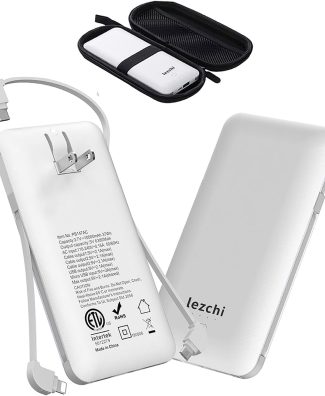 Portable Power Bank, Ultra Slim 10000mAh Portable Charger, USB C External Battery Pack with Built-in AC Plug, Charging Cable, Output Port, Compatible with All Kinds of Cellphones …